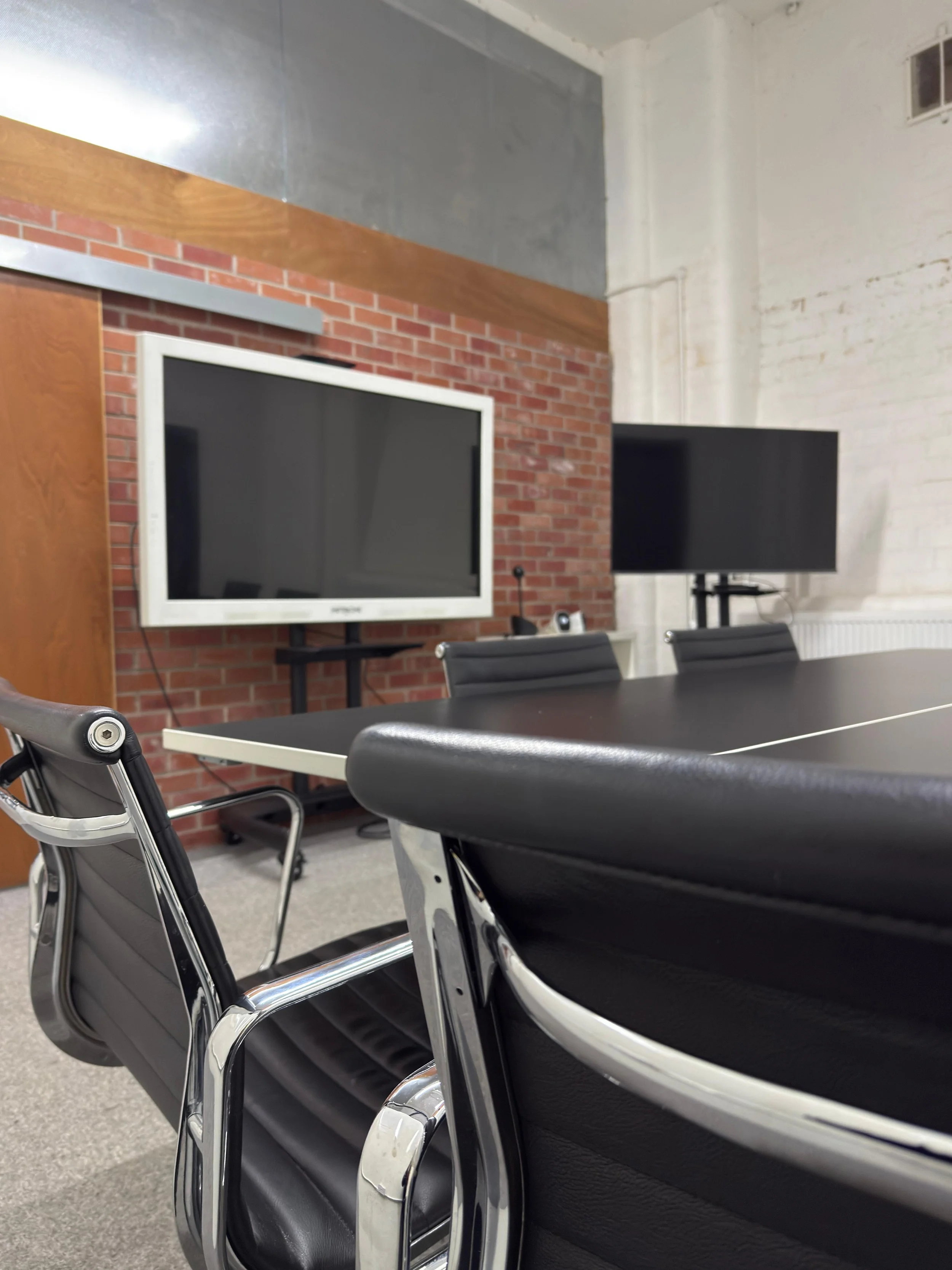 Our Boardroom is ideal for meetings and presentations. We have two screens with the latest technology available that allows for top-class presentations and video calls.