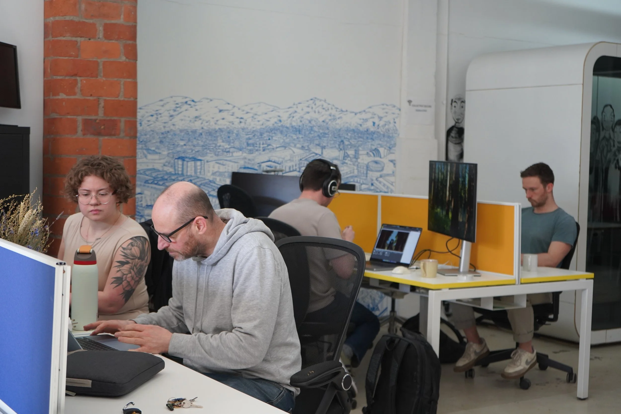 Discover a modern coworking space in Glasgow designed to support the way you work. From flexible hot desks and dedicated desks to private studios and fully equipped meeting rooms, every area at Glasgow Collective is built for productivity, comfort and collaboration. Located in the heart of the East End, our workspace brings together businesses, creatives and entrepreneurs in a setting that blends professional facilities with a strong sense of community.